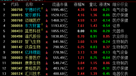 从资金流和创业板大小盘分化来看,资金青睐创蓝筹,大科技、大消费等品种,宁德时代、当升科技、新宙邦、漫步者、闻泰科技、韦尔股份、泰格医药等大盘趋势股走强,券商龙头中信建投、东方财富等大涨助力市场继续上攻。