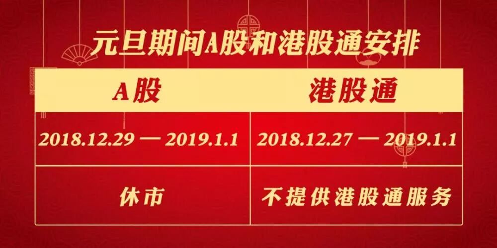 12月27日(星期四)至1月1日(星期二)不提供港股通服务,1月2日(星期三)起照常开通港股通服务。